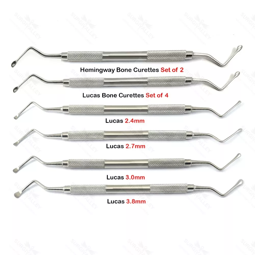 6PCS Lucas Curettes Hemingway Bone Curettes Dental Spoon Excavator Lab